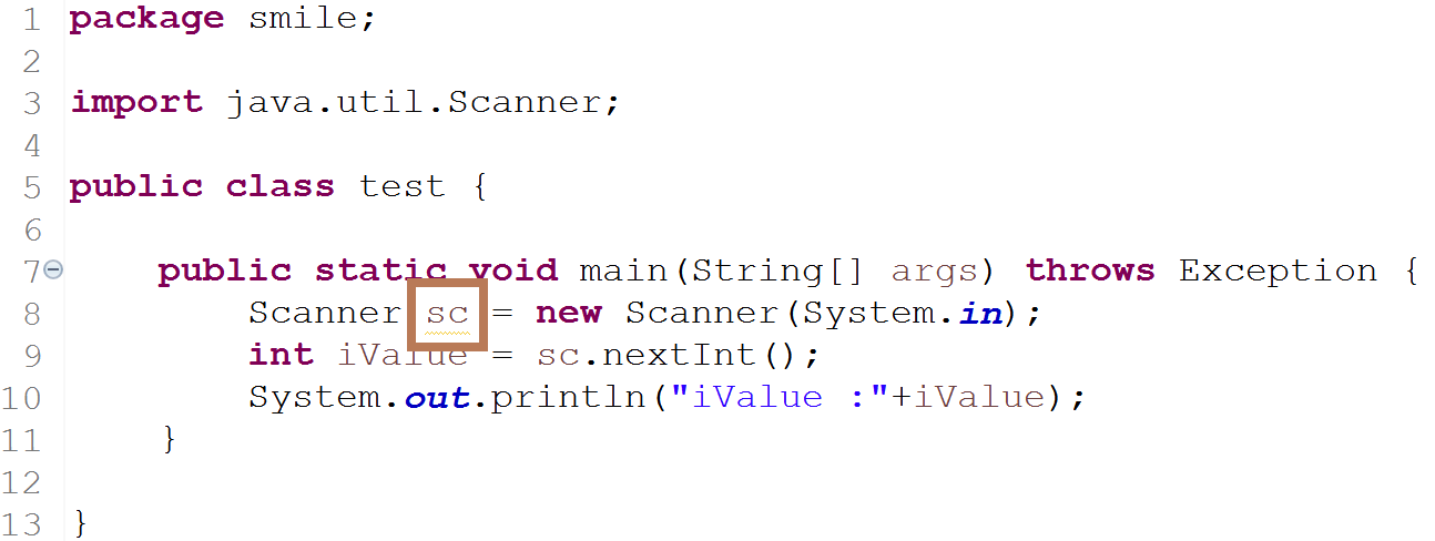 int iValue = sc.nextInt(); // 입력받은 정수를 변수 iValue에 저장